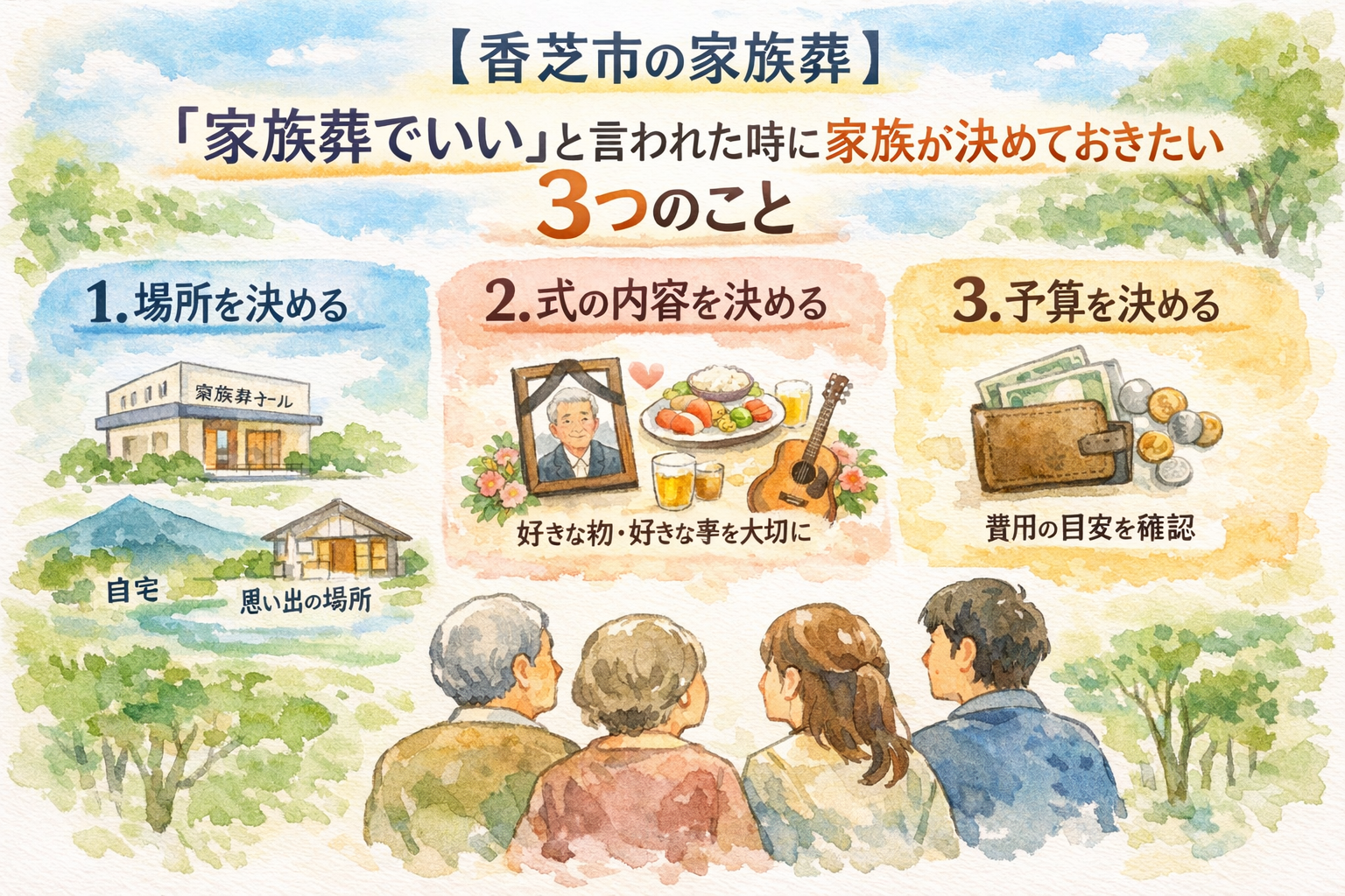- ⑤ そのままうち合わせできます:ご希望により日時・形式・費用のご説明も当夜にて