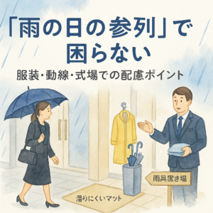 【“雨の日の参列”で困らない】服装・動線・式場での配慮ポイント