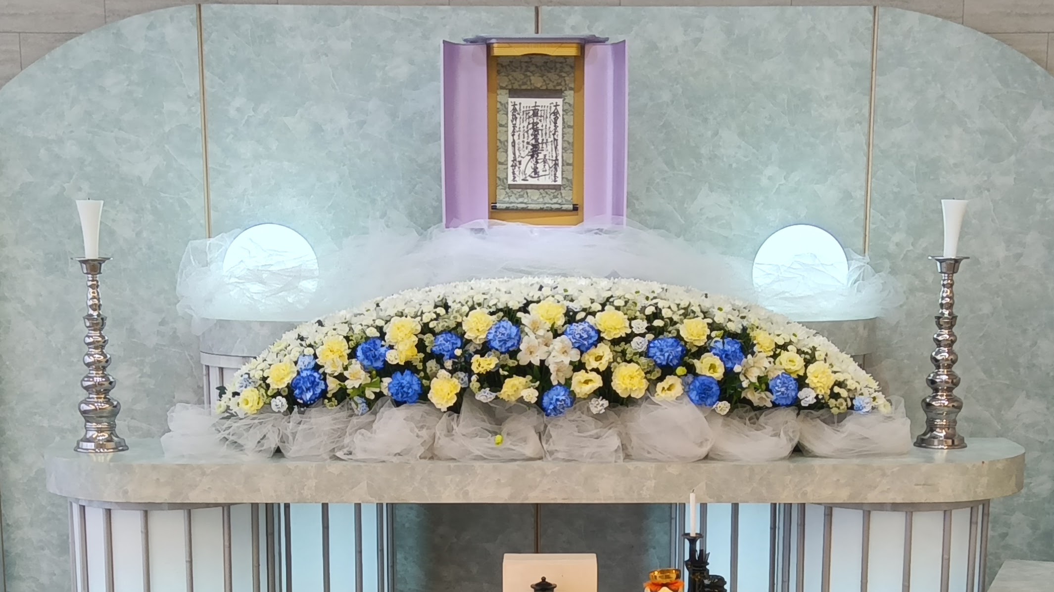 祭壇の花で、友人と好きなものに囲まれる姿を表現|香芝市で叶えた友人葬のあたたかな友人と